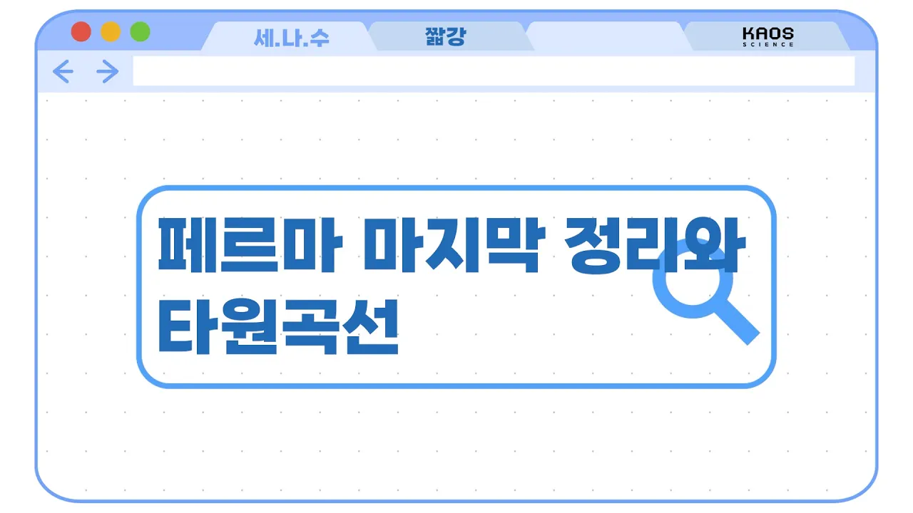 ![[카오스 짧강] 페르마의 마지막 정리와 타원곡선](https://i.ytimg.com/vi_webp/ARqITFCTU9k/maxresdefault.webp)
